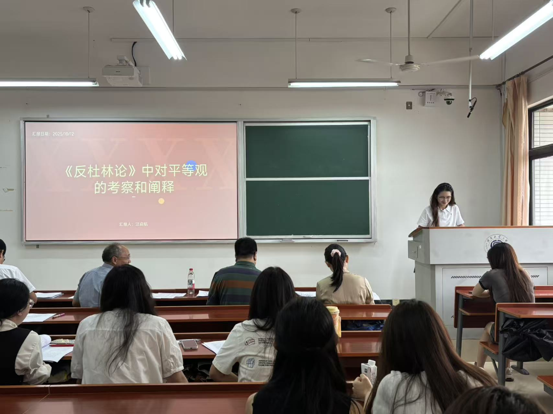 在点评环节,评审专家针对学生汇报精准指导。胡帆强调,原著学习要耐心钻研、联系实际,将理论与中国特色社会主义实践相结合,成为马克思主义的真知者、真信者、真行者,用理论指导实践,服务国家和人民。陈若松指出,马克思主义理论研究者研读经典原著,不能止步于“读过”,需穿透文字表象把握理论精髓,结合时代背景与现实问题深化理解,做到学深悟透、学以致用。